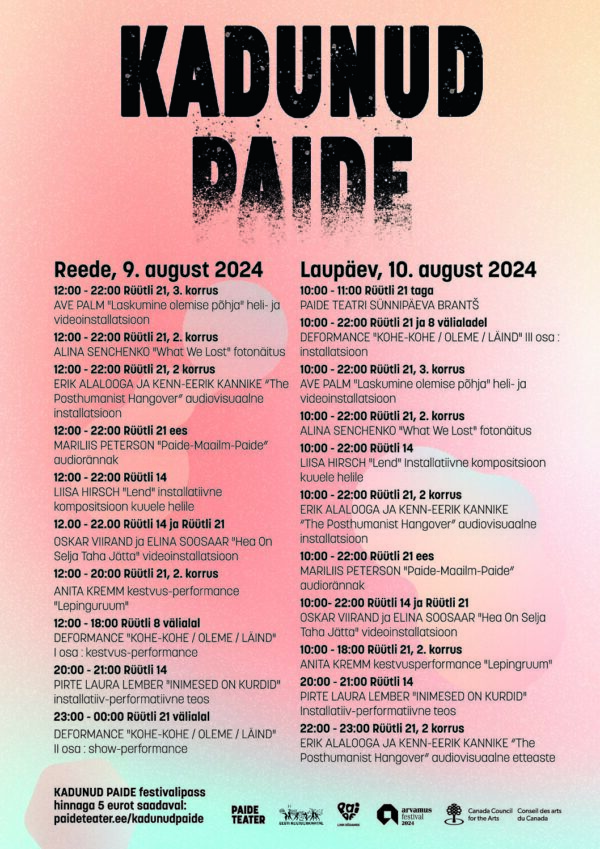 Head Curator – Interdisciplinary Art Festival “Lost Paide”, Paide Theater and Opinion Festival, Paide (August 9–10, 2024).Head Curator – Interdisciplinary Art Festival “Lost Paide”, Paide Theater and Opinion Festival, Paide (August 9–10, 2024).