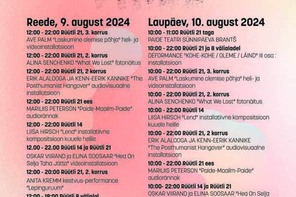 Head Curator – Interdisciplinary Art Festival “Lost Paide”, Paide Theater and Opinion Festival, Paide (August 9–10, 2024).Head Curator – Interdisciplinary Art Festival “Lost Paide”, Paide Theater and Opinion Festival, Paide (August 9–10, 2024).